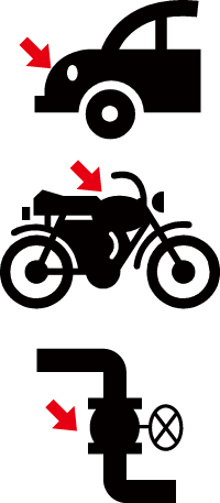 | 液体含浸タイプは、あらゆる隙間に入り込み錆や汚れを除去する性質から次のような用途によく使われています。また、粘度のあるジェルタイプは直接錆部に塗布できますので非常に簡単に作業が出来ます |